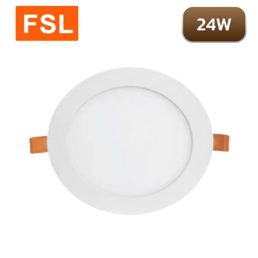 ดาวน์ไลท์ LED FSL 24W 12 นิ้ว มีให้เลือก 3 แสงคือ แสงส้ม Warm White, แสงขาวนวล Cool white, แสงขาว Daylight ให้ความสว่าง 1728/1848/2040 lm ตามลำดับ มุมกระจายแสง 120° ทำให้แสงกระจายตัวไปทั่วทั้งบริเวณติดตั้ง ไม่กระจุกตัว เหมาะสำหรับติดตั้งในห้องรับแขก ห้องทำงาน บริเวณทางเดิน ร้านอาหาร เป็นต้น