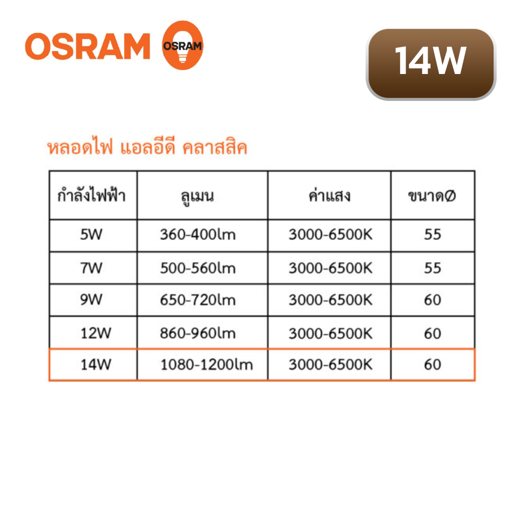 หลอดไฟ LED 14W OSRAM รุ่น ECO CLASSIC