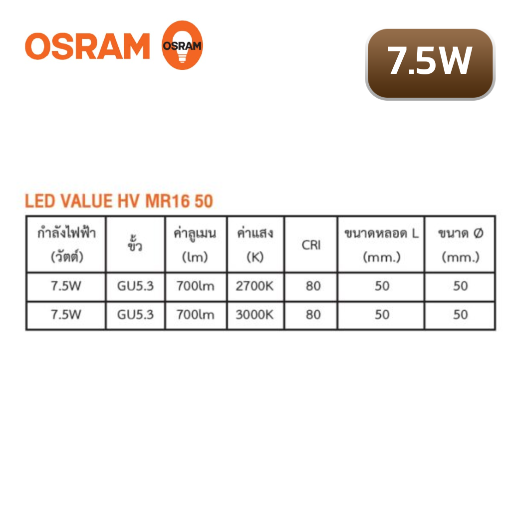 หลอดไฟ LED MR16 7.5W OSRAM รุ่น VALUE HV