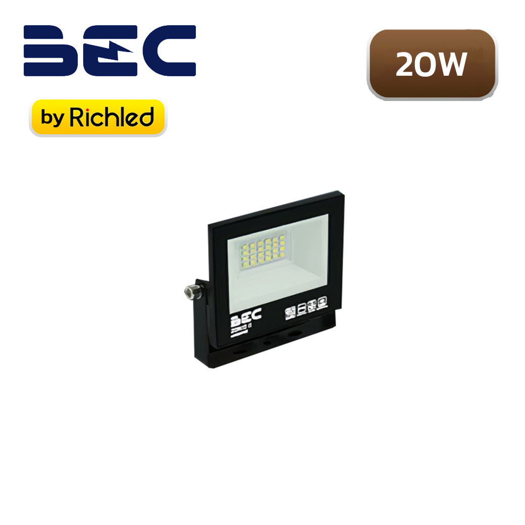 สปอร์ตไลท์ LED BEC ZONIC II 20W มีให้เลือก 2 แสงคือแสงส้ม Warm White แสงขาว Daylight รูปทรงถูกดีไซน์มาอย่างสวยงาม ทันสมัย กระจายแสงสว่างทั่วทั้งบริเวณที่ติดตั้ง เหมาะสำหรับติดตั้งบริเวณหน้าบ้าน ที่จอดรถ สวนสาธารณะ สวนย่อม ส่องป้ายร้านค้า ป้ายโฆษณา เป็นต้น ประหยัดค่าไฟ ตัวโคมทำจากอลูมิเนียมแข็งแรงน้ำหนักเบา กระจกนิรภัย มี Reflector ช่วยกระจายแสง กันน้ำและฝุ่นระดับ IP65 มีระบบป้องกันไฟกระชาก Surge Protection มาตรฐาน มอก. 1955-2551 รับประกัน 2 ปี